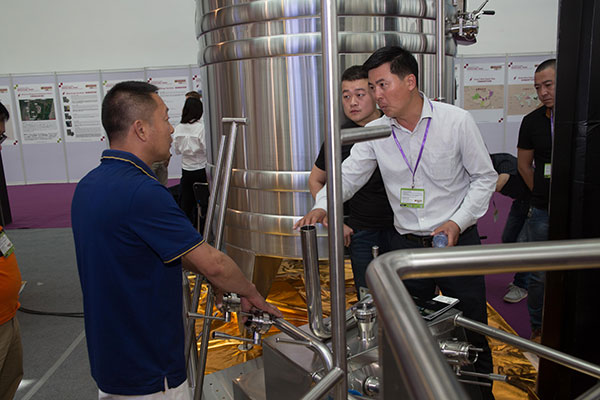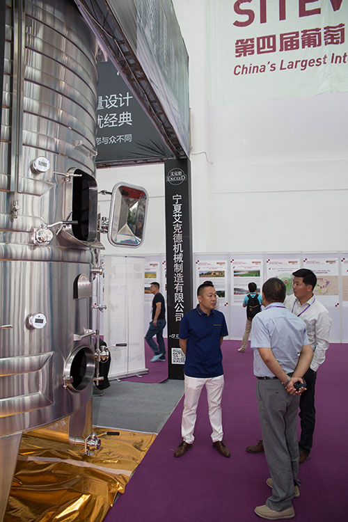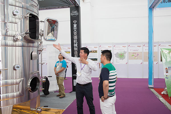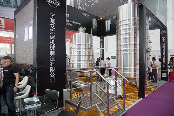 第四屆中國葡萄酒設備技術暨葡萄、果蔬種植展(SITEVINITECH CHINA)將于2015年6月10日至12日在銀川市國際會展中心舉行。艾克德機械制造公司攜技術合作伙伴法國制罐企業馬弗爾公司、法國TER倉儲籠參 展,艾克德展出了專利罐:不銹鋼錐筒發酵罐和不銹鋼雙層復合發酵罐獲得巨大成功,意向訂單爆棚!